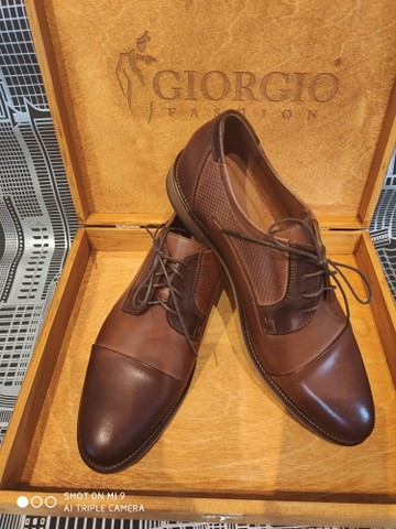 elegantní pánská společenská obuvoriginální luxusní obuv limitované kolekce GIORGIO v kombinaci světlé a tmavé kůže vytváří ideální doplněk k vašemu obleku ideální pro všechny odstíny modréobuv je zdobená jemnou perforací v horní části a špička boty má patinový efektdoporučujeme doplnit obuv kvalitním opaskem hnědé barvydřevěná krabička není součáští balení, jedná se pouze o rekvizitu